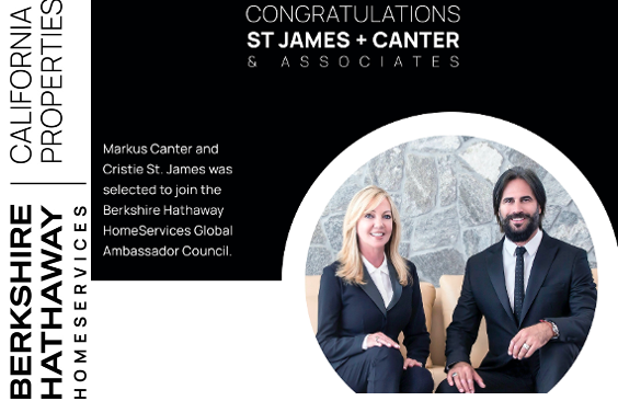 Markus Canter and Cristie St. James have been selected to join the Berkshire Hathaway HomeServices Global Ambassador Council.