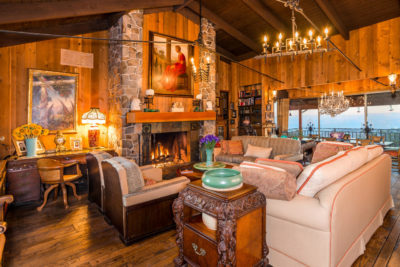 Property highlights include a five-bedroom, six-bathroom main residence with hardwood floors, stone fireplaces and beamed and evaluated ceilings.