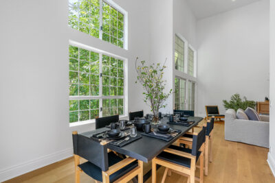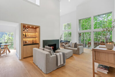 This extraordinary corner-unit home is perfect for the luxury buyer seeking a casual yet elegant environment that showcases natural woods and a neutral palette of creams, blacks, greys, and whites. With soaring 20-foot-plus double ceiling heights and wide-plank floors, the enormous living and dining rooms offer an expansive and light-filled space with double-height walls of windows. The bar and fireplace area are perfect for entertaining. The custom details throughout the home and amazing office loft bonus space are simply stunning.