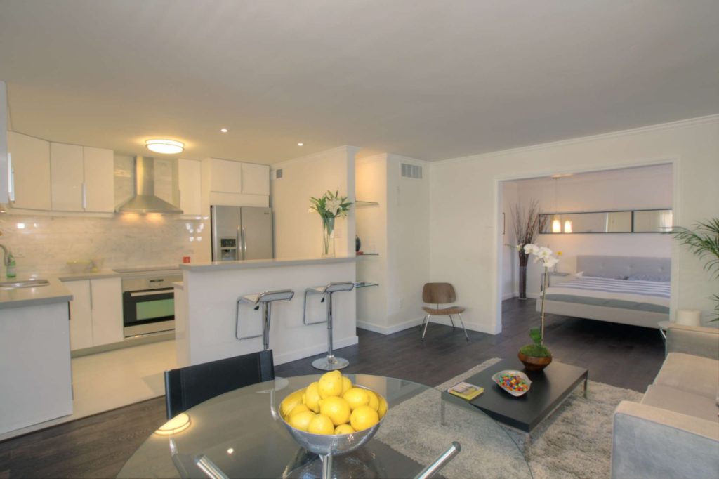 St. James + Canter Just Listed This Uber-Stylish Designer Done Remodeled 1 Bedroom + 1 Bathroom Condo In Highly Sought After “Tropical Paradise Oasis” Mid-Century Building With “Resort Style” Pool & Spa. The Ultimate Lifestyle Awaits You Located In The Heart Of West Hollywood Walking Distance To The Famous Sunset Strip And Weho Restaurants, Boutiques, And Entertainment. Just Completed And Totally Renovated (By FCB:Design) This Sleek, Sophisticated, And Modern Unit Features: A European Kitchen With Gloss White Cabinetry, Grey Quartz Countertops, Carerra Marble Backsplash, Designer Tile Floors, Breakfast Bar, and Stainless Steel Appliances. Multi-Directional Recessed Lighting. Dark Oak Hand-Oiled Hardwood Floors. Dressing Room With Aluminum & Frosted-Glass Sliding Doors And Organized Closet. Up-Scale Bathroom With Floor To Ceiling Tile Shower /Tub, High-End Vanity With White Ceramic Wash Basin. The Perfect Bachelor/ Bachelorette Pad or City Pied-A-Terre.
