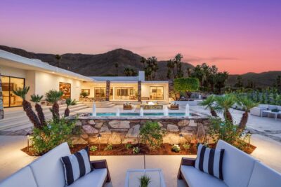 Located in Rancho Mirage, California, just outside of Palm Springs, the three-bedroom, three-and-a-half bathroom residence boasts 180-degree views of the desert and the San Jacinto Mountains from every room, according to last week’s listing with Markus Canter and Cristie St. James of St. James + Canter, Berkshire Hathaway HomeServices California Properties.