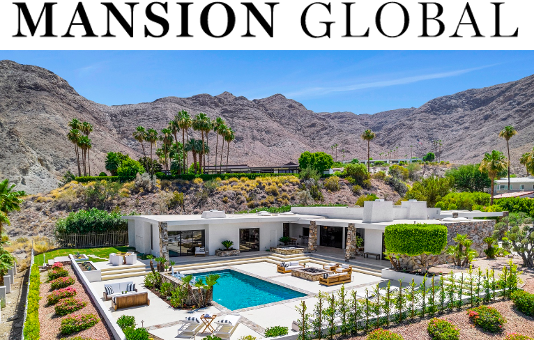 Located in Rancho Mirage, California, just outside of Palm Springs, the three-bedroom, three-and-a-half bathroom residence boasts 180-degree views of the desert and the San Jacinto Mountains from every room, according to last week’s listing with Markus Canter and Cristie St. James of St. James + Canter, Berkshire Hathaway HomeServices California Properties.