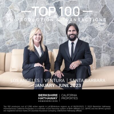 Berkshire Hathaway HomeServices California Properties released the Top 100 Agents in production and transactions for the first half of 2023.
