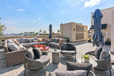 The outdoor features of this residence are as impressive as the interiors. A rooftop view deck with an outdoor kitchen offers unparalleled sunset viewing opportunities, providing a seamless fusion of contemporary design and timeless elegance. Each unit boasts a patio or private balcony, perfect for grilling or relaxing outdoors, making the entire city of Beverly Hills feel like an extension of your living space.